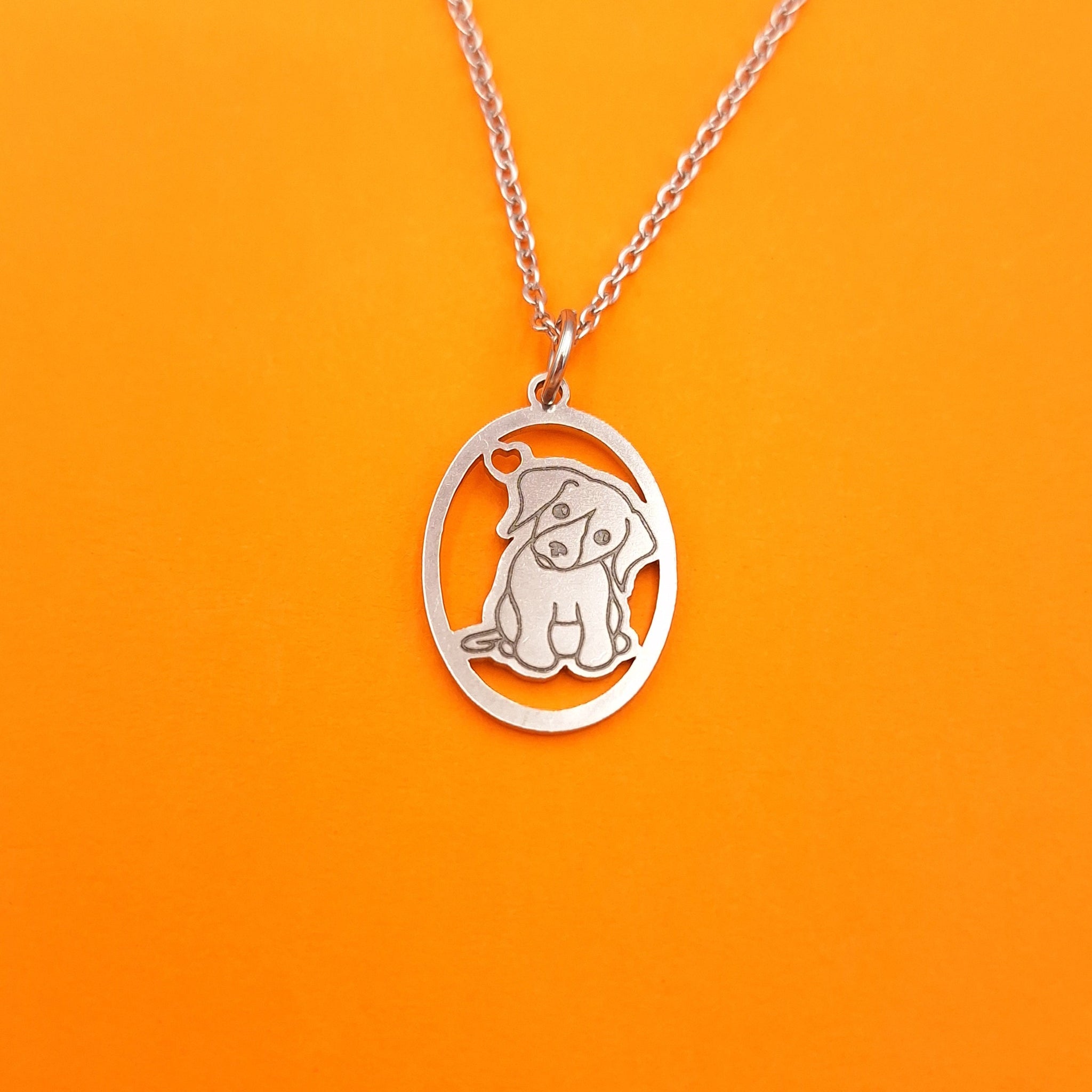 Cute stainless steel Dog pendant laser engraved and supplied with a chain