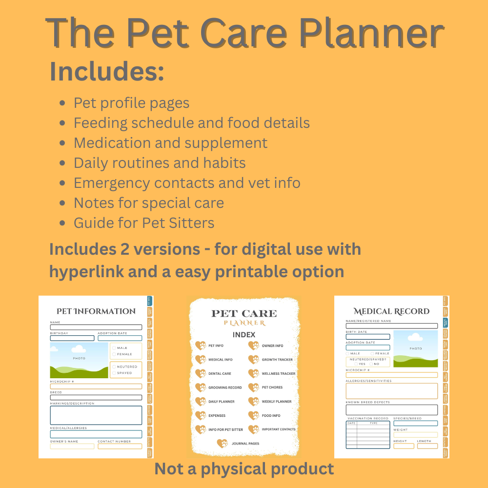 Digital Pet Planner for Dogs, Cats, and Small Pets
