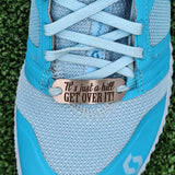 Inspire yourself to stay active and on track with your goals, with this awesome shoelace tag - It's just a Hill. Get over it!
