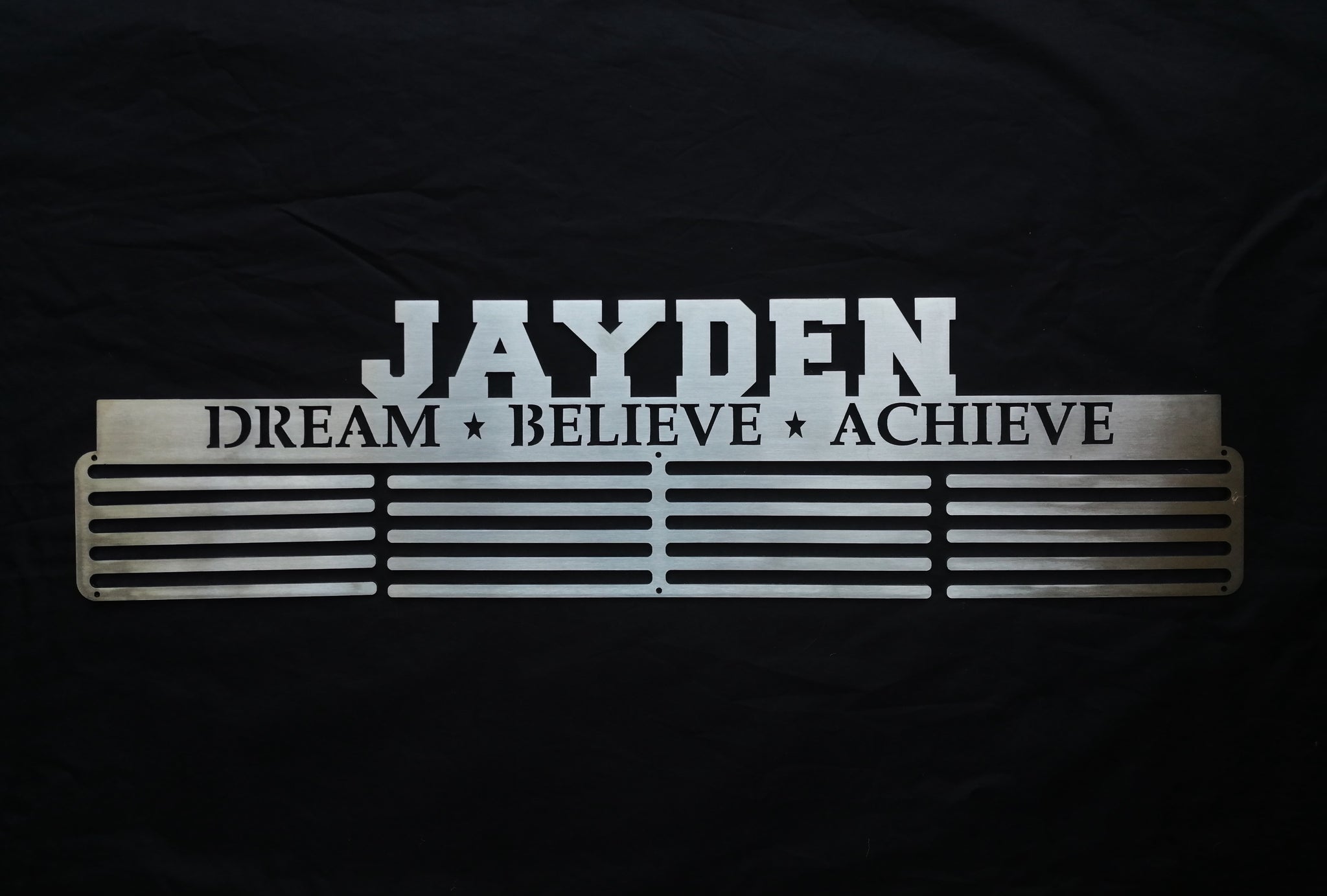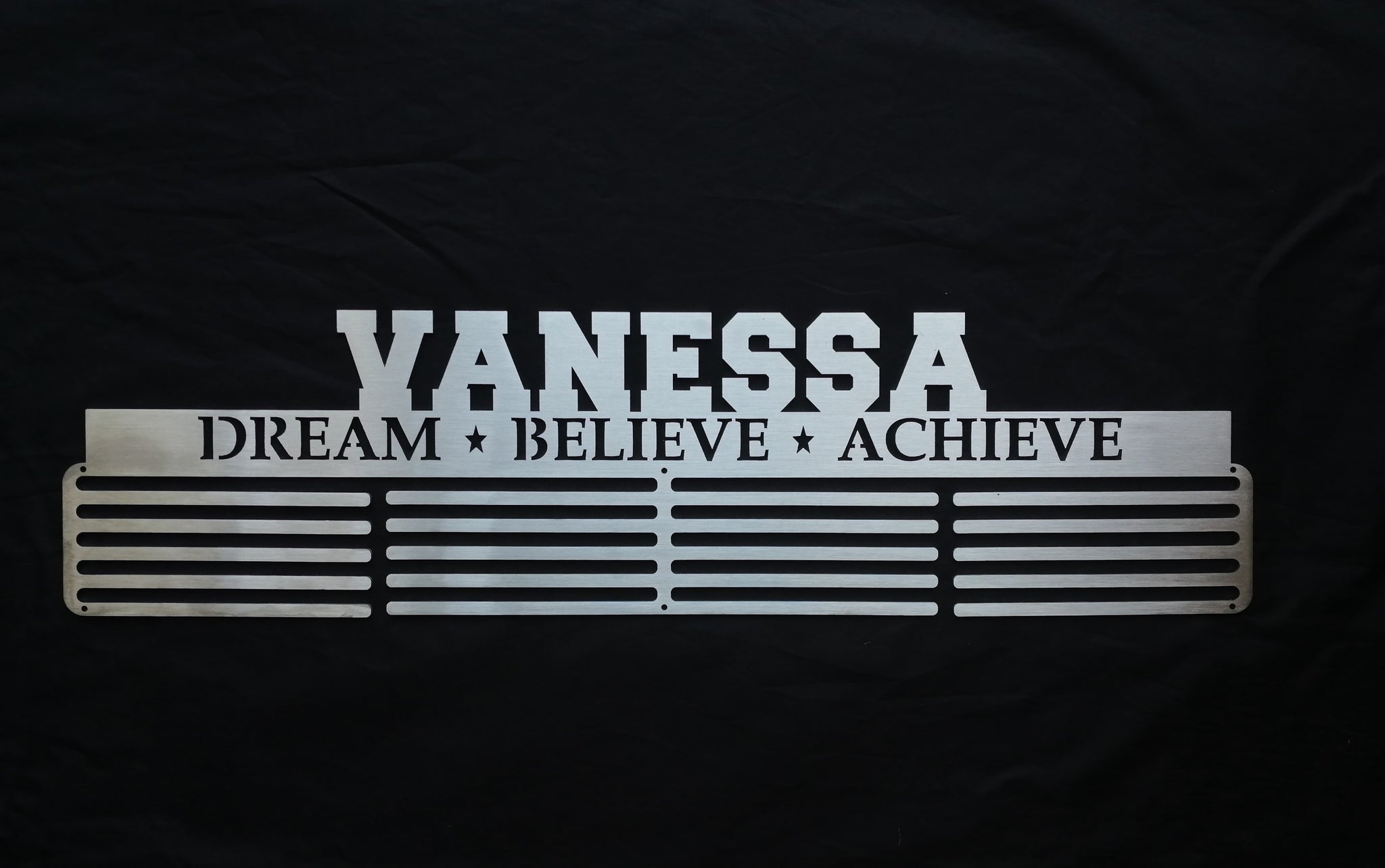 Laser cut from Stainless Steel, this medal hanger is perfectly crafted to display your hard earned medals.