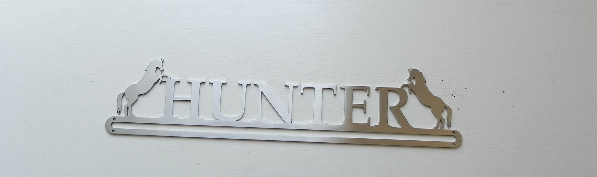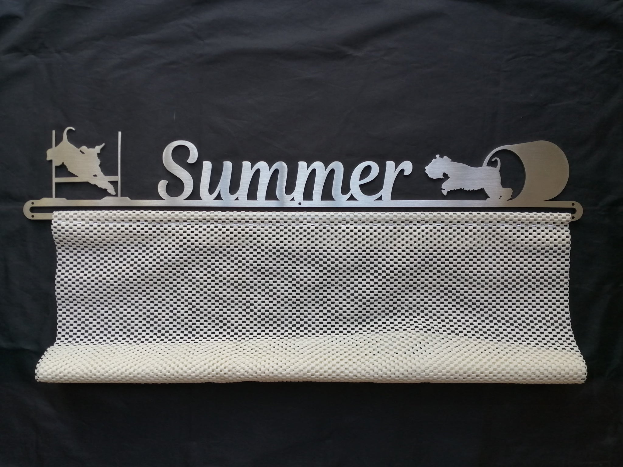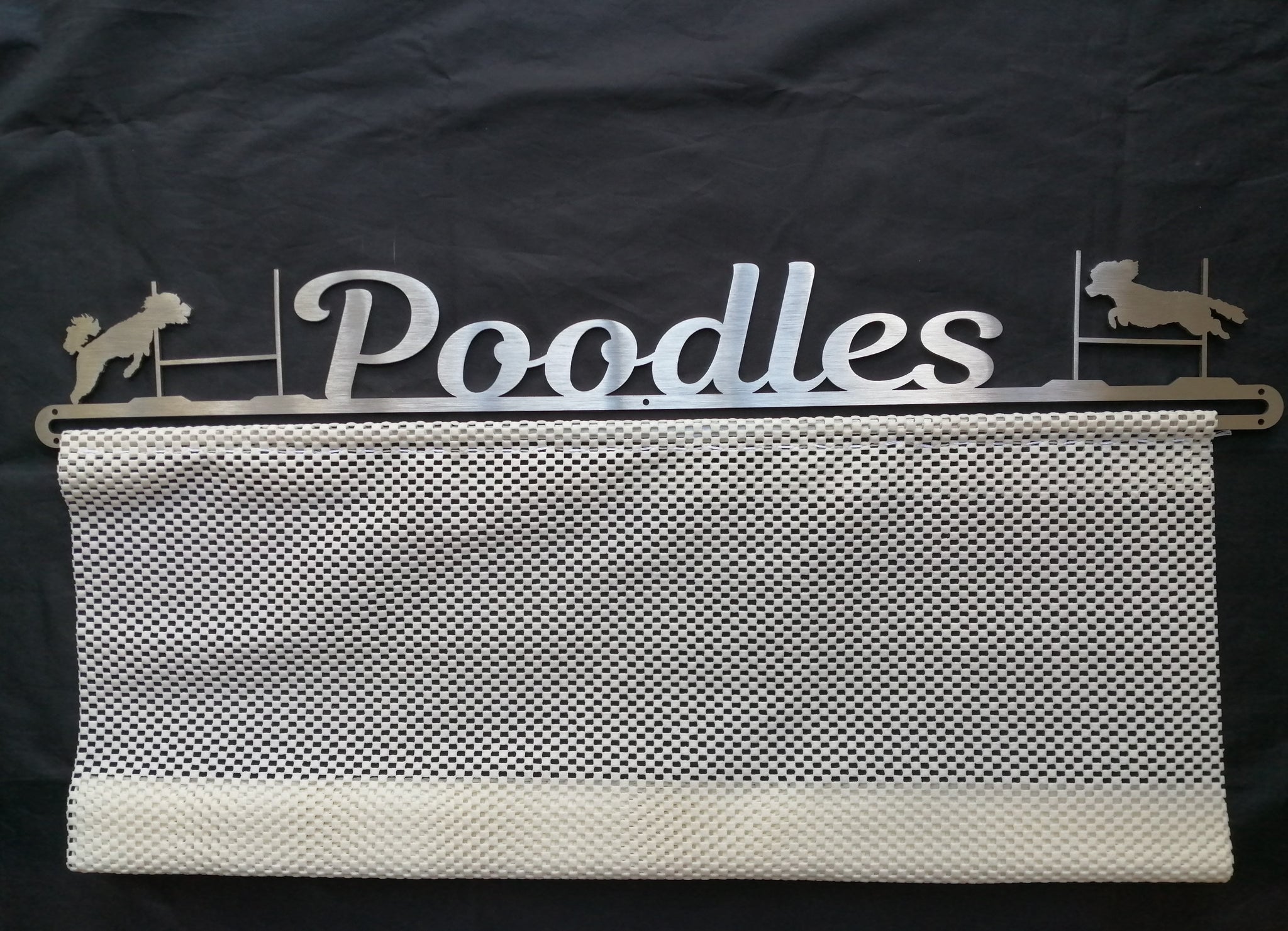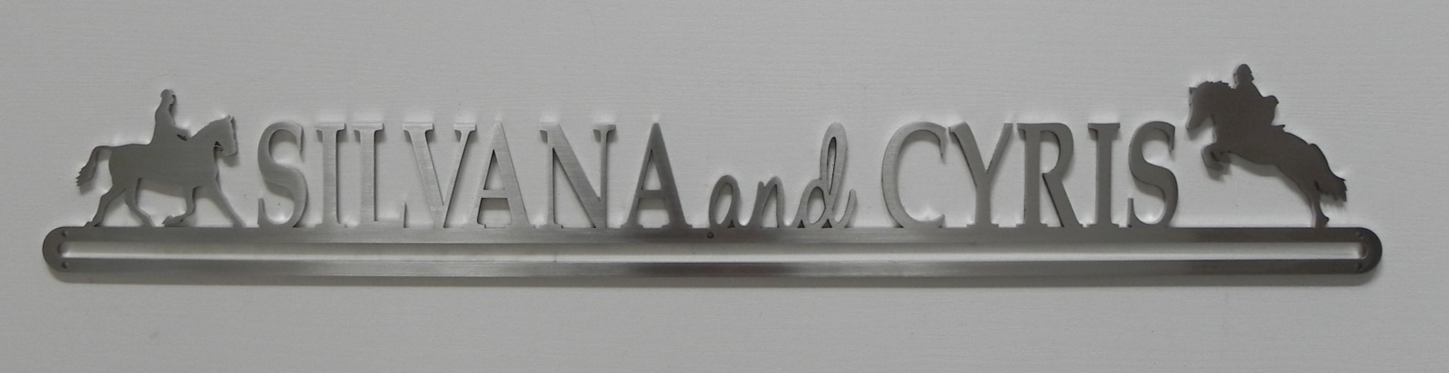 Our stunning Rosette Hangers consists of two parts. The upper section is beautifully laser cut from stainless steel, then brushed for a perfect finish. The lower section, where the rosettes are either pinned or hooked is made from a rubberised mesh sheeting. This allows you to display a large number of both types of rosettes with ease